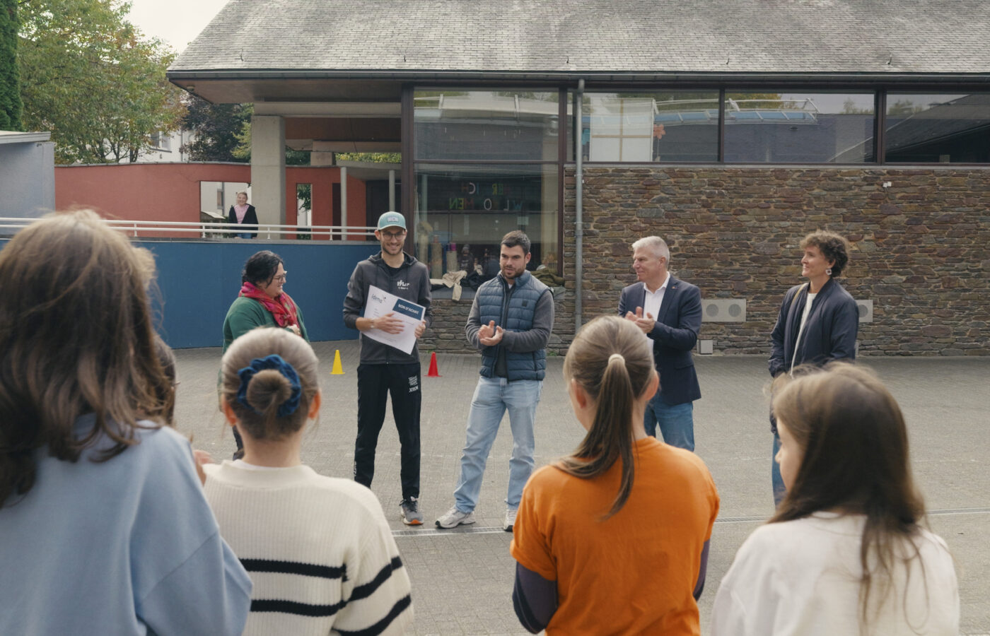 Auch in diesem Jahr erhielten alle Schulen, die an der EWDS teilgenommen haben, ein Teilnahme-Kit, bei dem es sich um einen Gutschein für Sportmaterial handelt. Das Kit wurde dabei während der Woche gemeinsam mit unserem Minister für Sport Gregor Freches symbolisch in zwei Primarschulen, nämlich der Grundschule Weywertz sowie der Grundschule des Königlichen Athenäums Sankt Vith, übergeben.
